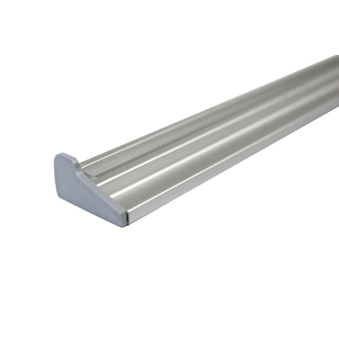 Finished in anodized aluminum and heavy-duty plastic end plates. Banner attached by clamp bar on top and Velcro on the bottom. It is quick, simple to use and holds two 36″W x 69″ to 74″H banners (80″ with a 6″ bottom bleed.)